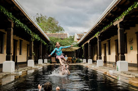 When we arrived back from the long trip from Panajachel to Antigua, we checked into our hotel at Porta Antigua. Everyone took a moment to breathe and the kids immediately hit the pool. Meanwhile, Michael put his tux back on and I got back into my wedding gown to go hit the streets of Antigua for our photo shoot.